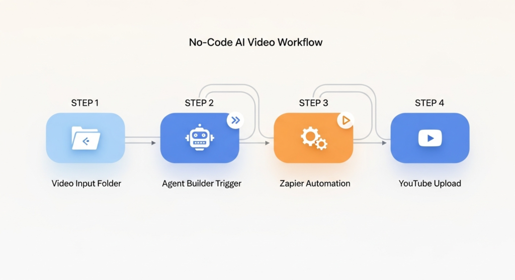 Tools like Agent Builder and Zapier let me automate video editing, distribution, and storage without writing a single line of code. I connect platforms like Google Drive, Dropbox, Slack, YouTube, and Instagram through workflows that handle the repetitive tasks automatically.