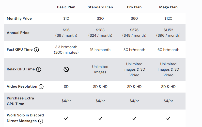 Midjourney pricing :