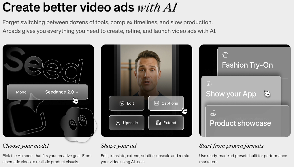 Arcads is the tool I’d reach for when the goal is making AI-generated video that doesn’t look AI-generated. The avatars show actual micro-expressions — little head tilts, natural pauses, gestures — that most tools miss. For ads under 60 seconds, the output is genuinely close to what you’d get from a mid-tier UGC creator.