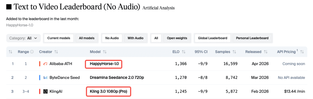 | HappyHorse-1.0 | 1,366 Elo | 1,399 Elo |