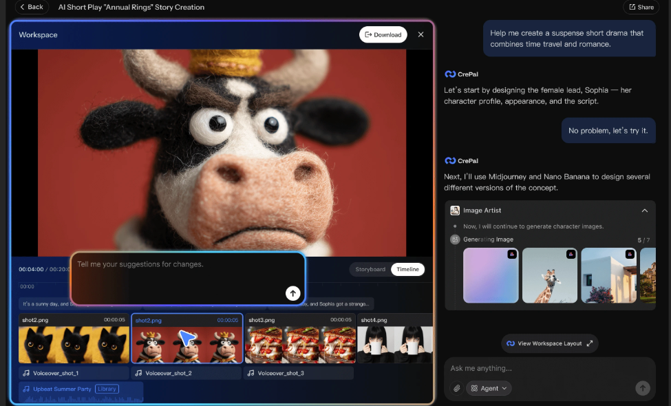 Beyond video, Crepal also offers AI-powered image generation tools if you need custom thumbnails or scene backgrounds—handy when stock visuals don’t quite fit your vision.