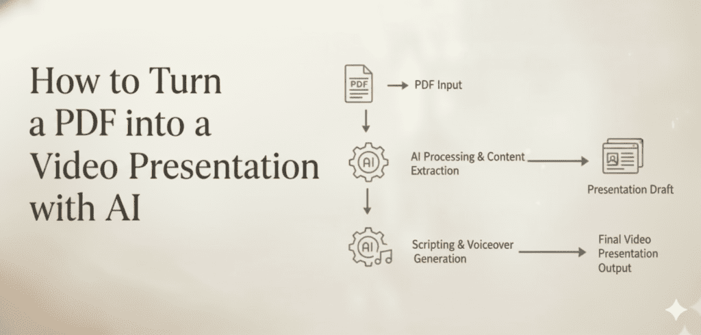 Meta Description: Learn how to turn a PDF into a video presentation with AI. Convert slides, docs, or reports into clear videos with narration, visuals, subtitles, and platform-ready exports.