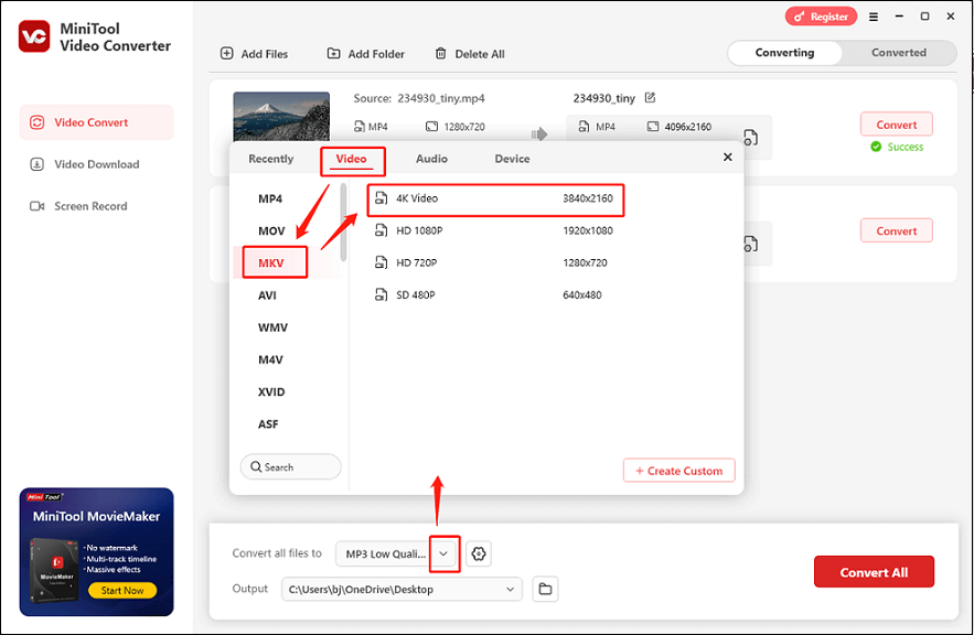 Q: Can it convert 4K video? Yes. MiniTool supports 4K output and can handle H.265 encoding for 4K files. Just make sure to set the bitrate manually — the default may be too low for 4K without visible compression artifacts, especially in high-motion scenes.