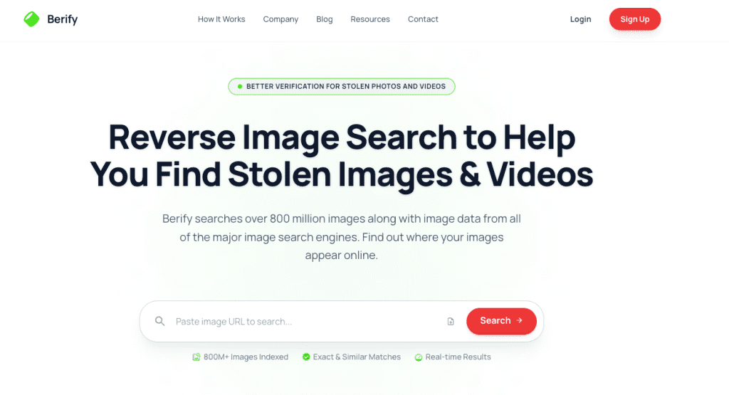 Berify is designed specifically for creators protecting their content. It simultaneously runs your screenshot through Google, Bing, Yandex, and its own proprietary database — over 800 million images — and can monitor your content on an ongoing basis, alerting you when a new match appears. The free tier allows a handful of searches; paid plans start around $5.95/month.