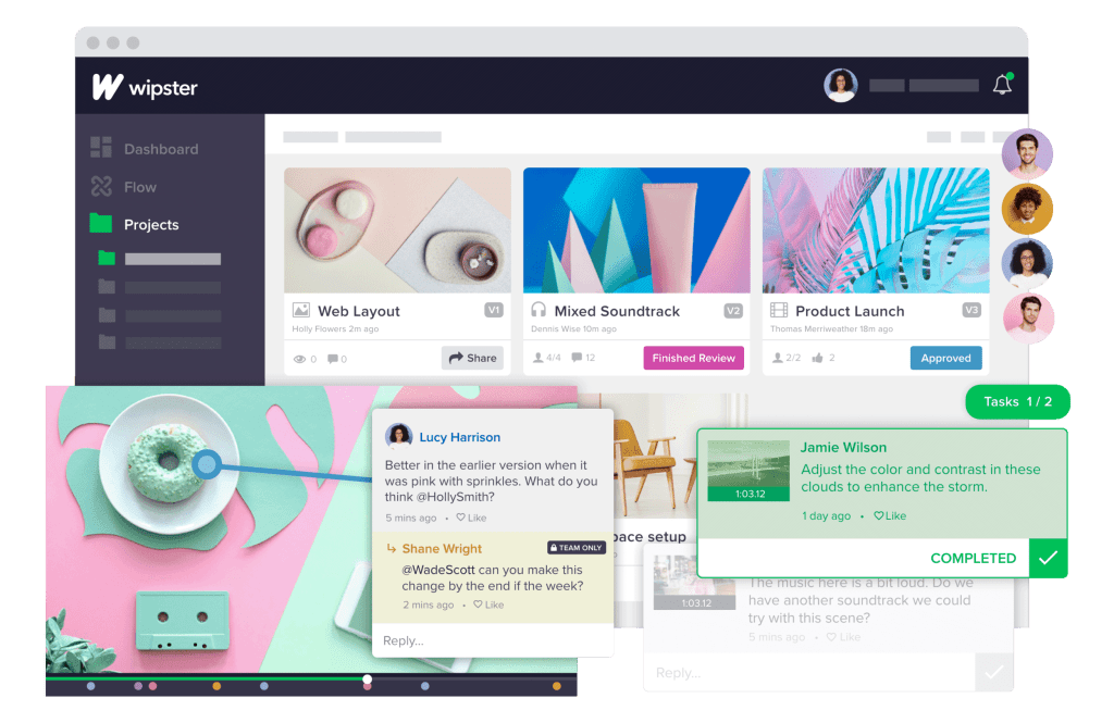 Small teams of 2–8 need version control and some kind of notification system, so the right person gets pinged when feedback lands. Wipster and Screenlight hit this sweet spot. Both have real-time comment threading and work without forcing every reviewer to create an account.