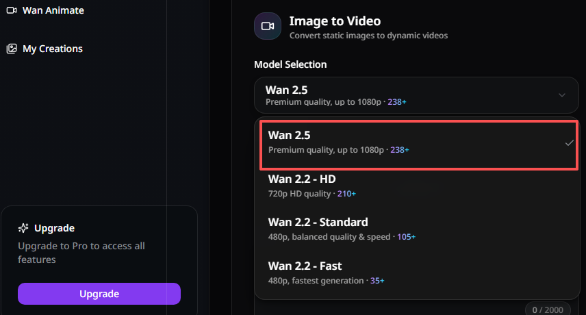 - 48 frames (2s): Sweet spot. WAN 2.5 can “remember” the start state without drifting.